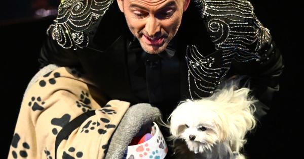 大卫·田纳特带着迈克尔·辛的狗狗巴克·鲁法洛出席了英国电影学院奖颁奖典礼。在伦敦皇家节日大厅的舞台上,他穿着苏格兰裙,抱着迈克尔·辛的狗。