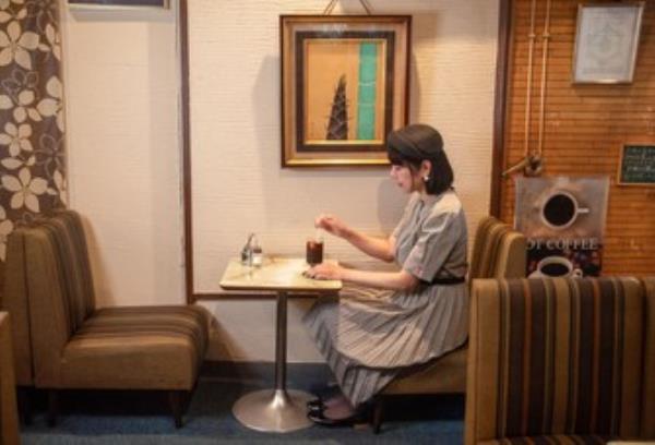 南波在Yuraku咖啡店接受采访时表示,复古咖啡店的吸引力在于其独特的装饰和许多大型连锁店所没有的“新鲜感”。Yuraku咖啡店位于东京浅草桥区,以许多批发商店和出售传统日本玩偶的商店而闻名。