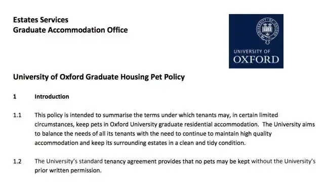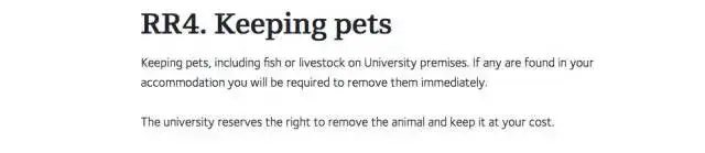 比如,牛津大学申明,没有学校允许,不可以喂养宠物。