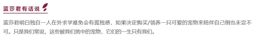 今天的【小白到大师】到这里也就结束啦,希望能够解决大家对于在英养宠物的疑惑,如果还有任何问题,可以随时滴滴蓝莎君哦~