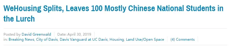此前,美国一家知名的留学生租房平台WeHousing就曾爆雷,不少留学生在已缴纳房租的情况下,仍被公寓房告知其长期拖欠房租,如果再不缴纳将会采取断网、清人的措施。部分留学生甚至收到了驱逐警告通知信。