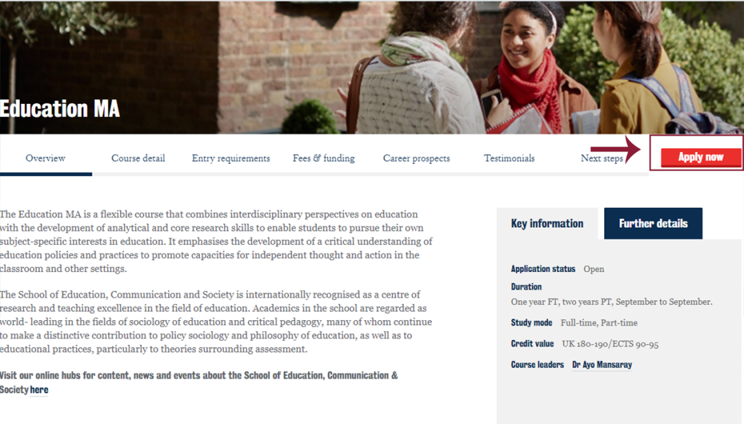 选择好你心仪的专业,阅读相关信息之后,决定申请,点击 Apply Now。