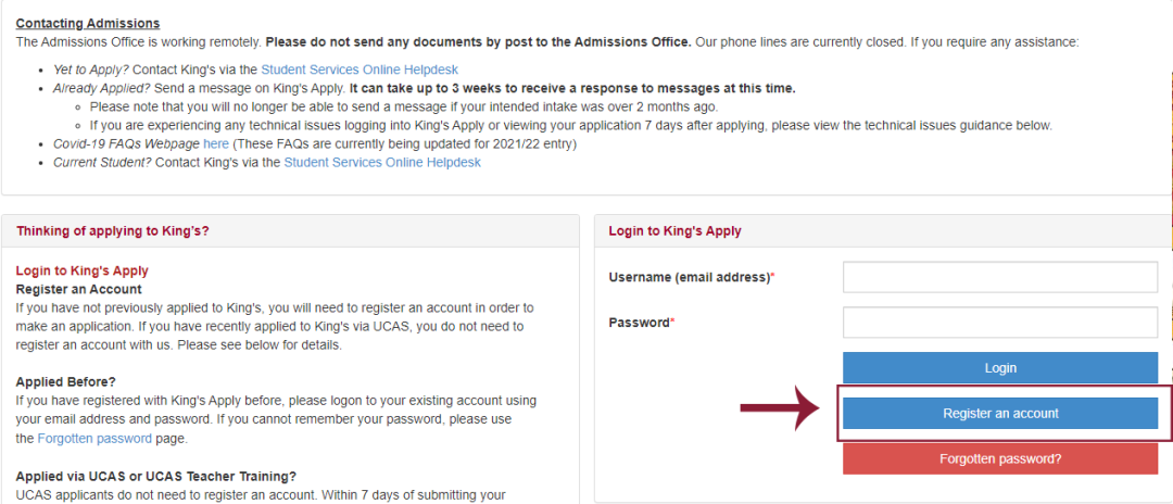 如果你是首次申请,需要点击Register an account申请一个KCL的账号。