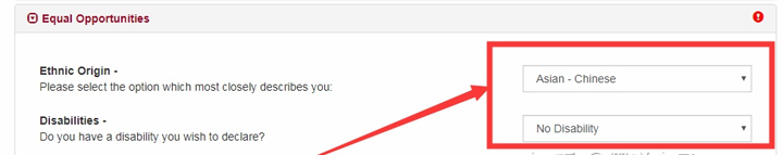 种族选 Asian Chinese,疾病选 No Disability。项目开始前你在中国居住过3年了吗?选 yes