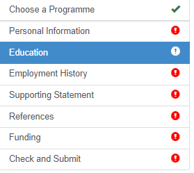 跳转到申请要求,此处就是你申请该专业所需要的一些硬性指标和条件(英语水平、证书、举荐信、举荐人等等),最后save。