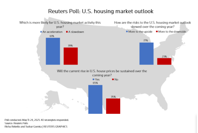 根据5月11日至24日对40位房地产分析师的调查,美国房价的这一指标预计将超过国内生产总值(GDP)增速和消费者通货膨胀率——今年的平均增速达到10.6%,几乎是2月份预测的5.7%的两倍。